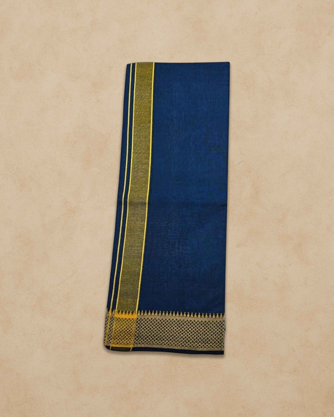Cotton Color Dhotis for Men | Devotional or Temple Wear Dhoti | Mundu for Men | Padayappa Border Dhoti for Puja, Festivals, Religious and Casual Home Wear - Blue