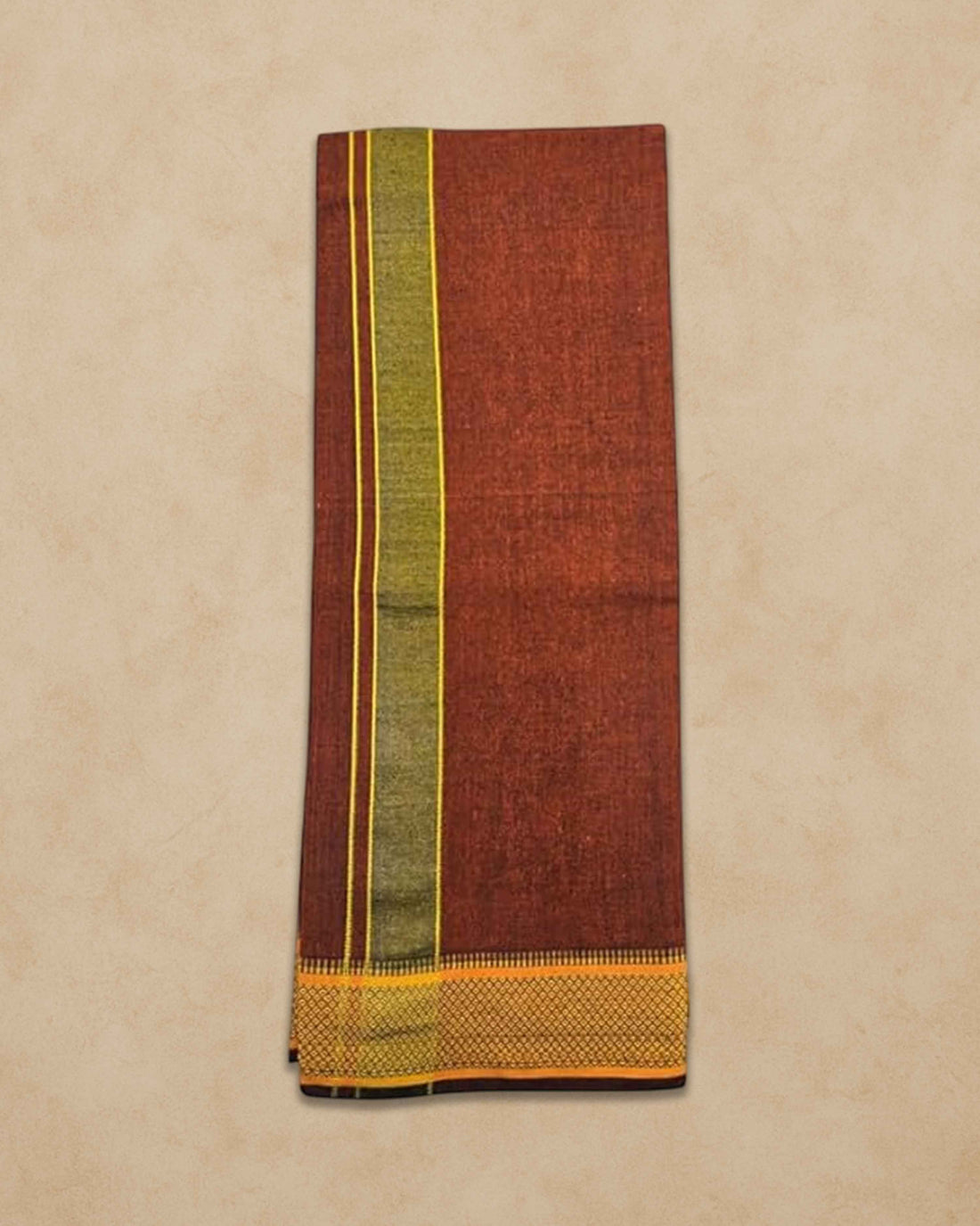Cotton Color Dhotis for Men | Devotional or Temple Wear Dhoti | Mundu for Men | Padayappa Border Dhoti for Puja, Festivals, Religious and Casual Home Wear - Brown