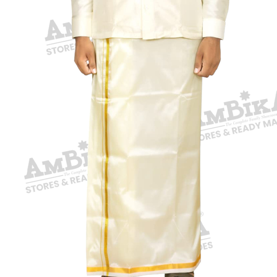 Mens Art Silk type Jari Dhoti/Double dhoti 1.28 x 3.50 Meter / 8 Mulam vesti (CREAM)