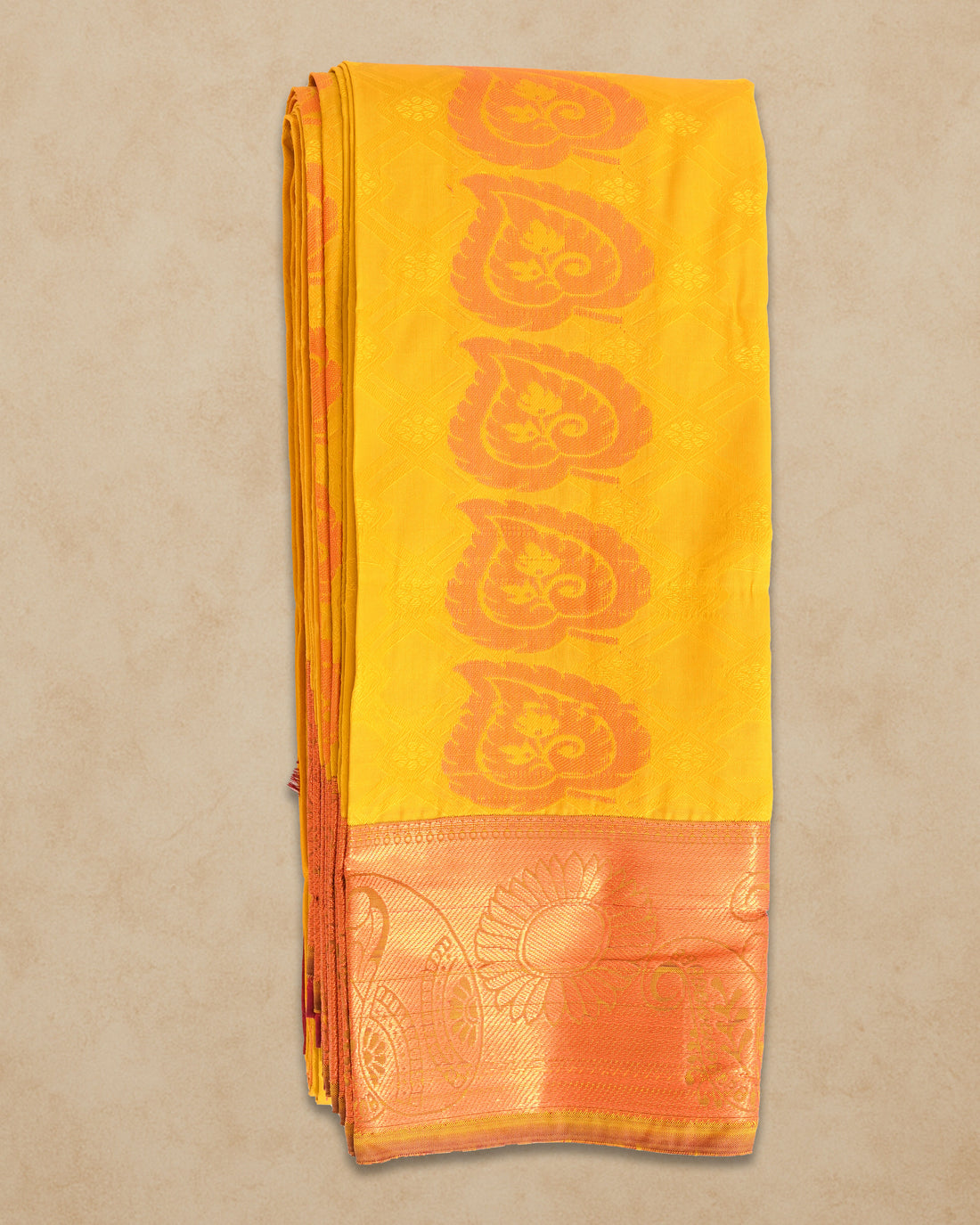 Drape yourself in elegance with this stunning mango yellow saree, crafted to perfection for weddings,...