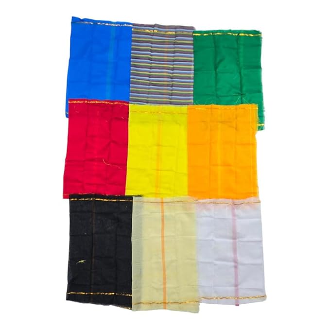 Navagraha Cloth Set for Navagraha Shanti Pooja - (14 x 19 inch) Navagraha Raw Silk Cotton Cloths | Puja Kapda Vastra Cloth for MANDIR Temple (Multicolor, Pack of 9)