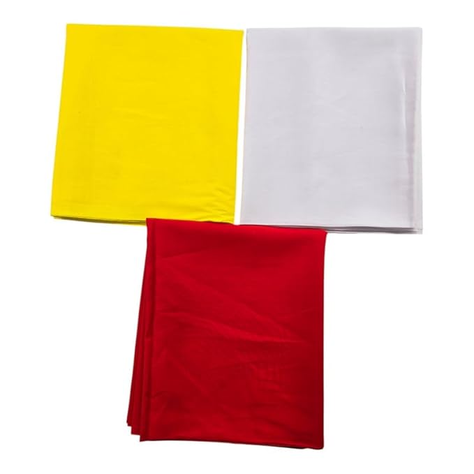 Cotton Plain Pooja Aasan Cloth/Chowki Aasan Kapda - 1 MTR Puja Kapda Vastra Cloth for All God Puja Mandir and Temple - Pack of 3 (Yellow, White and Mango Yellow)