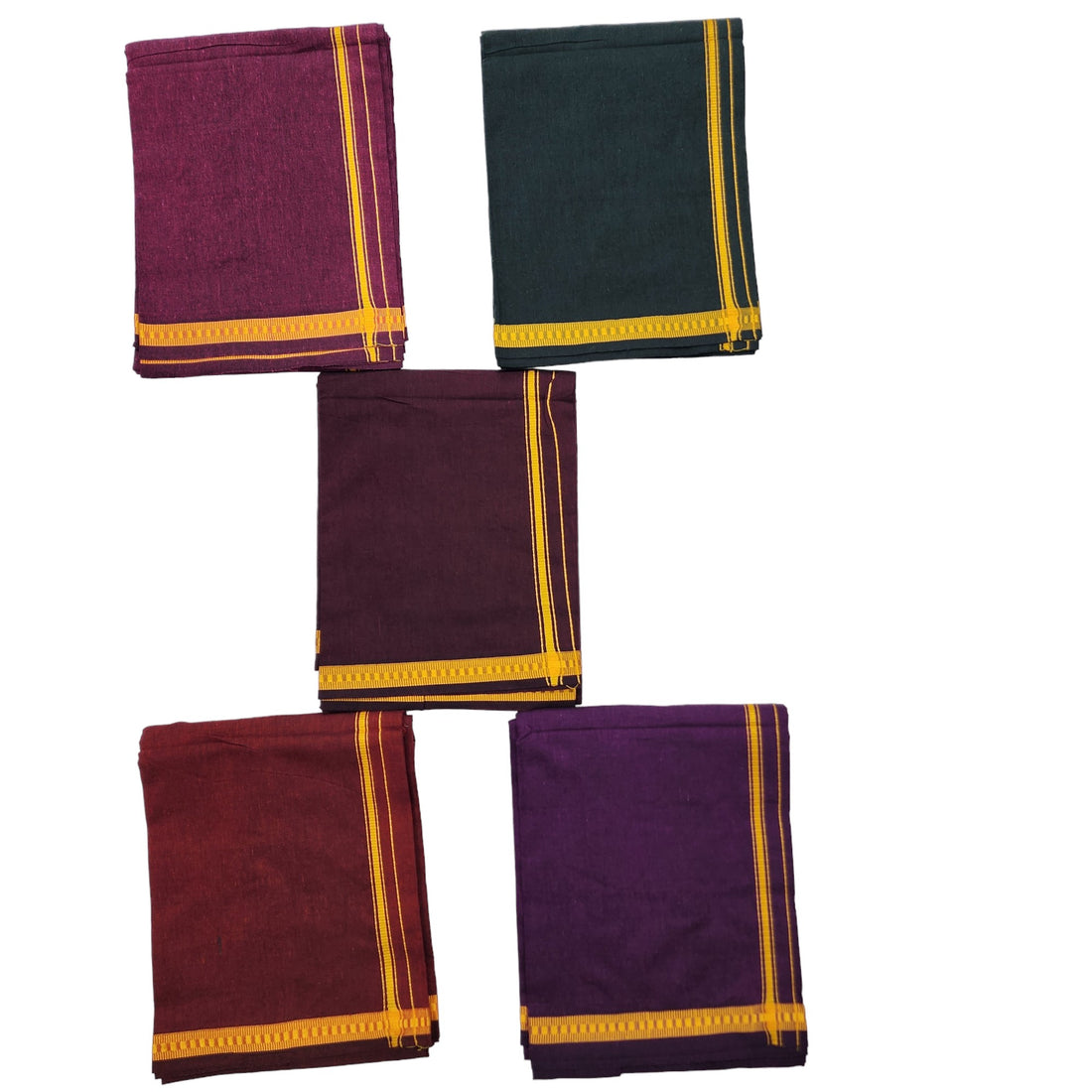 Men's Cotton Kerala Style Single Pondu Dhoti (Multicolour, 1.28x2.00 m)- Pack of 5