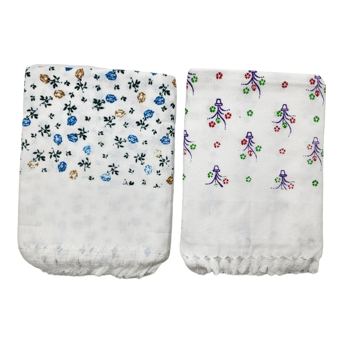 Fine Cotton Floral Bath Towels Lightweight, Fast Absorbing, Large Size, Combo Set | Absorbent, Quick Dry, Feather Light, Super Soft (Fringe Border) 90 X 180 cm (36 X 72 Inches)