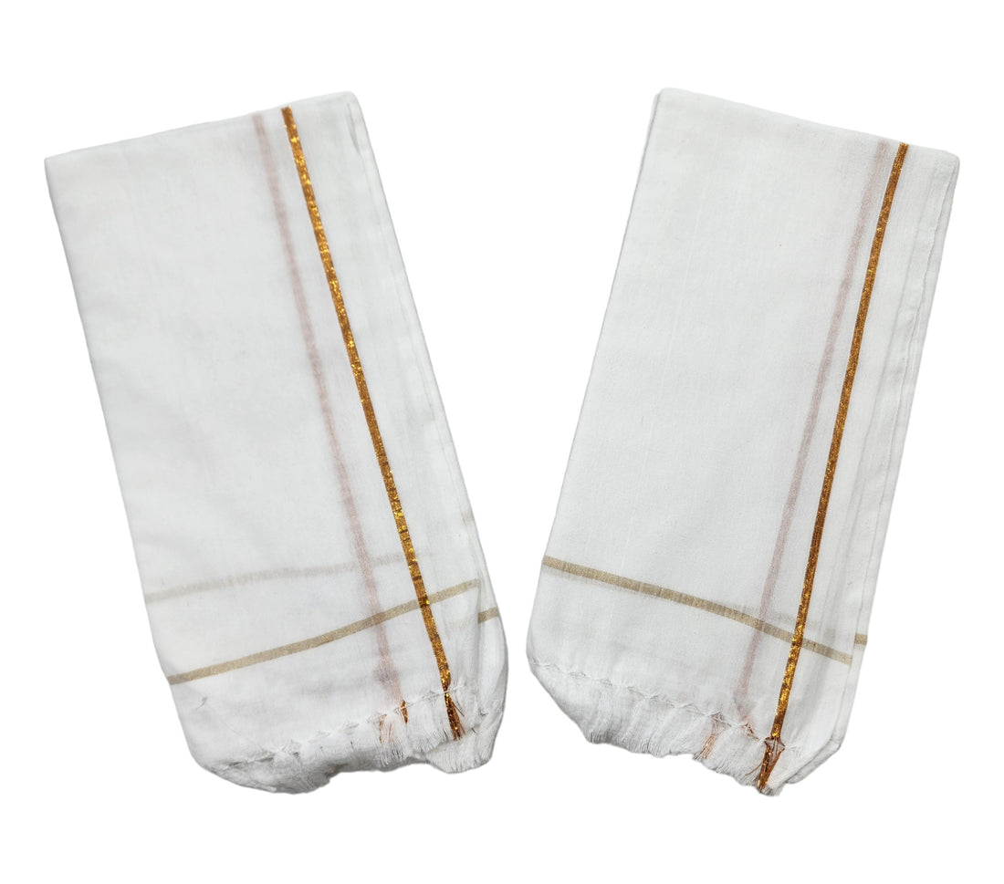 White Cotton Bath Towels Light Weight, Fast Absorbing, Pure Cotton Kerala Jari Thorthu/Bath Towel/Gamcha Large Size, Combo Set Pack of 2 Pieces(Hot Washable) 75 X 150cm (30X60 Inches)