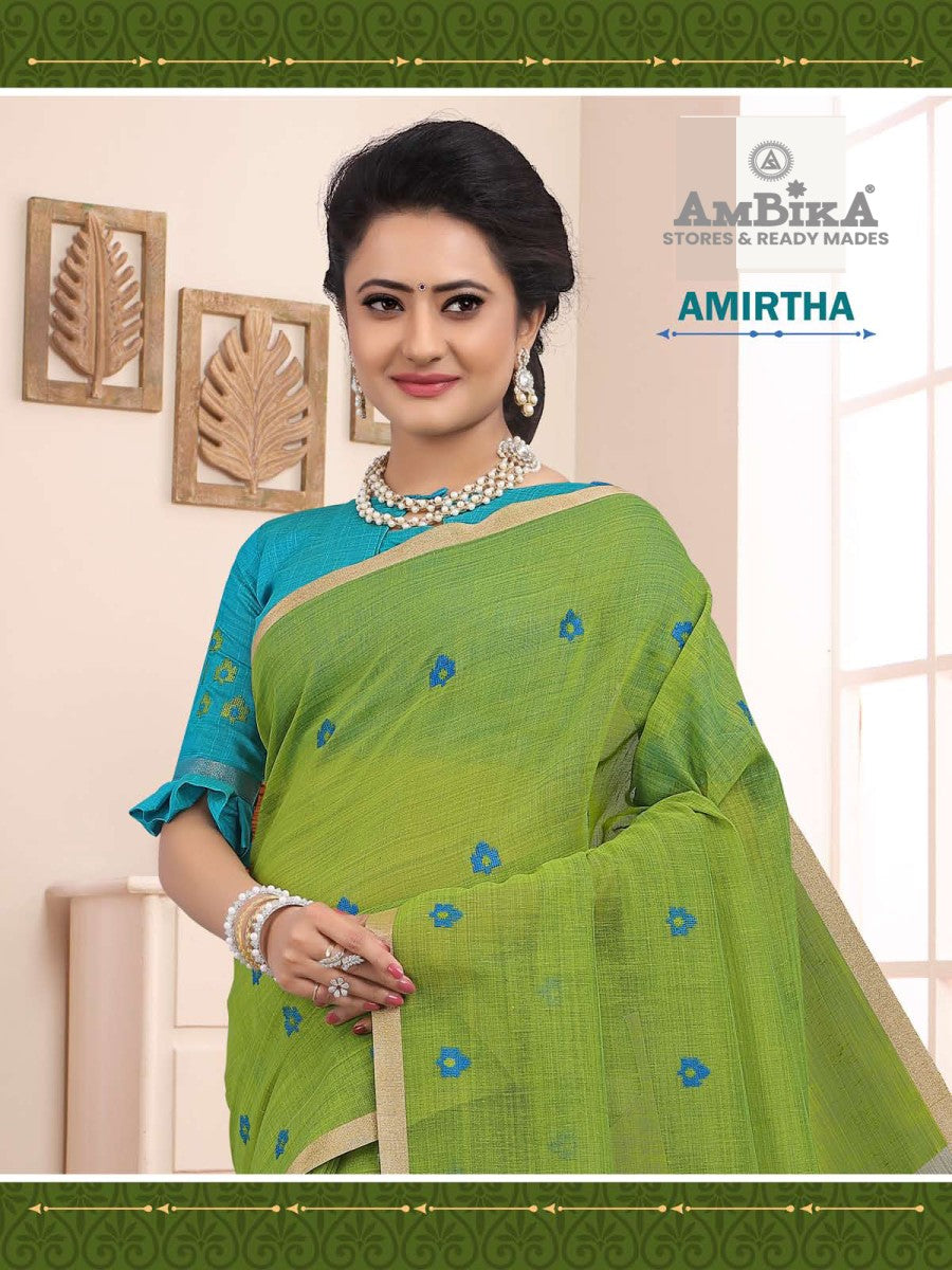 AMIRTHA SILK COTTON SAREE with Zari Butta with Blouse Piece for Womens