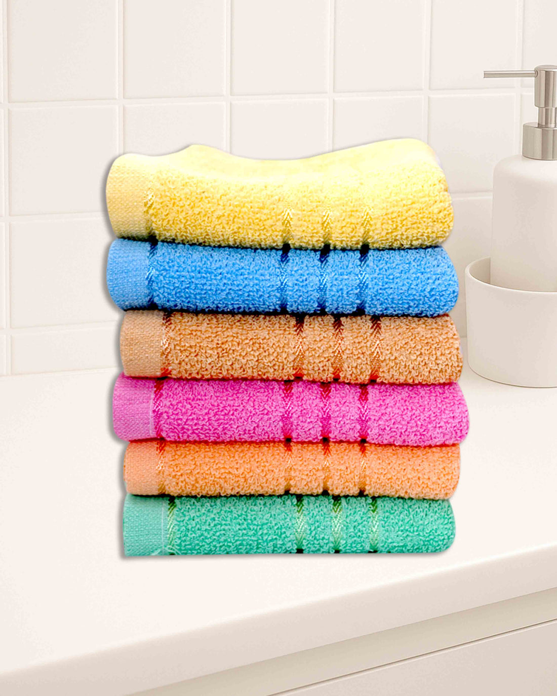 Machine Wash, Warm. Wash Dark Colours separately. Attractive Multi Color & Striped design Hand Towels...