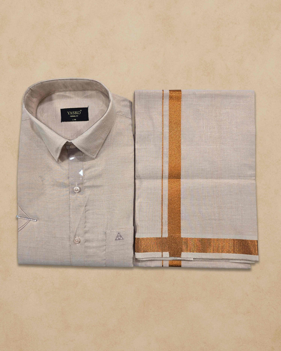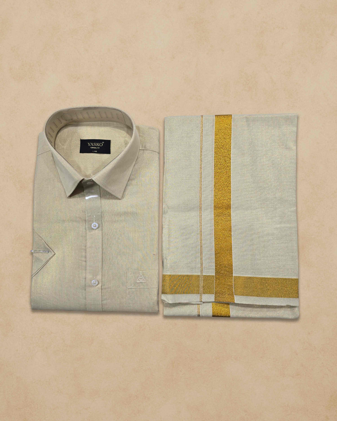 Combo of Shirt and Dhoti | Traditional Wedding Set for Men Half sleeve - Gold