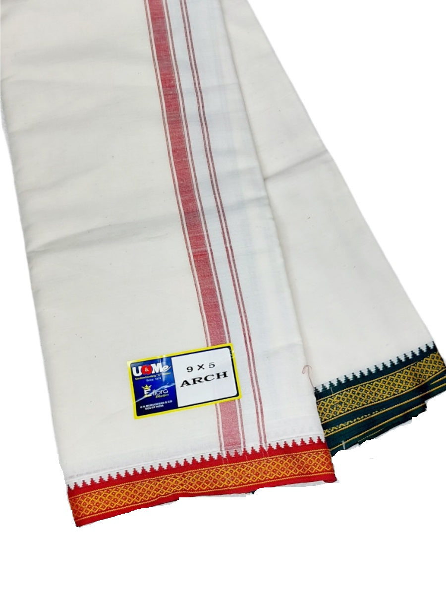 Cotton Mens Panjakejam White Dhoti Mayil Kan Border & Towel set [9 X 5]