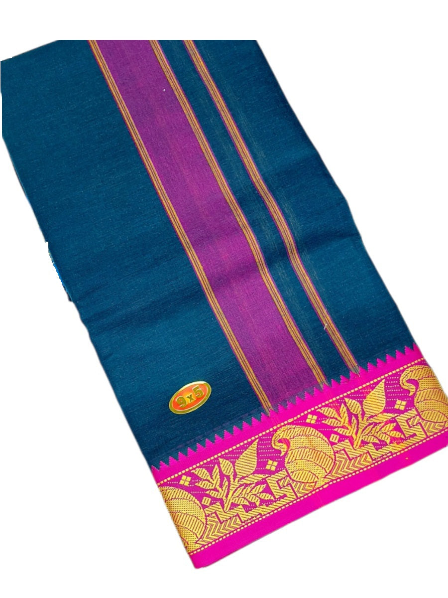 Cotton Mens Panjakejam Colour Dhoti With Fancy Border & Towel set [9 x 5]