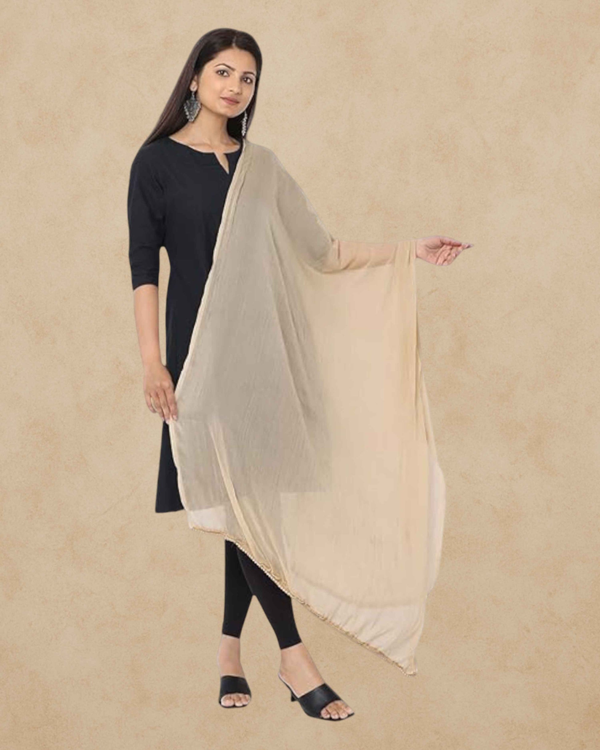 - Adorn yourself with this solid coloured chiffon dupatta. Wrap around this versatile piece and match your favorite occasion.