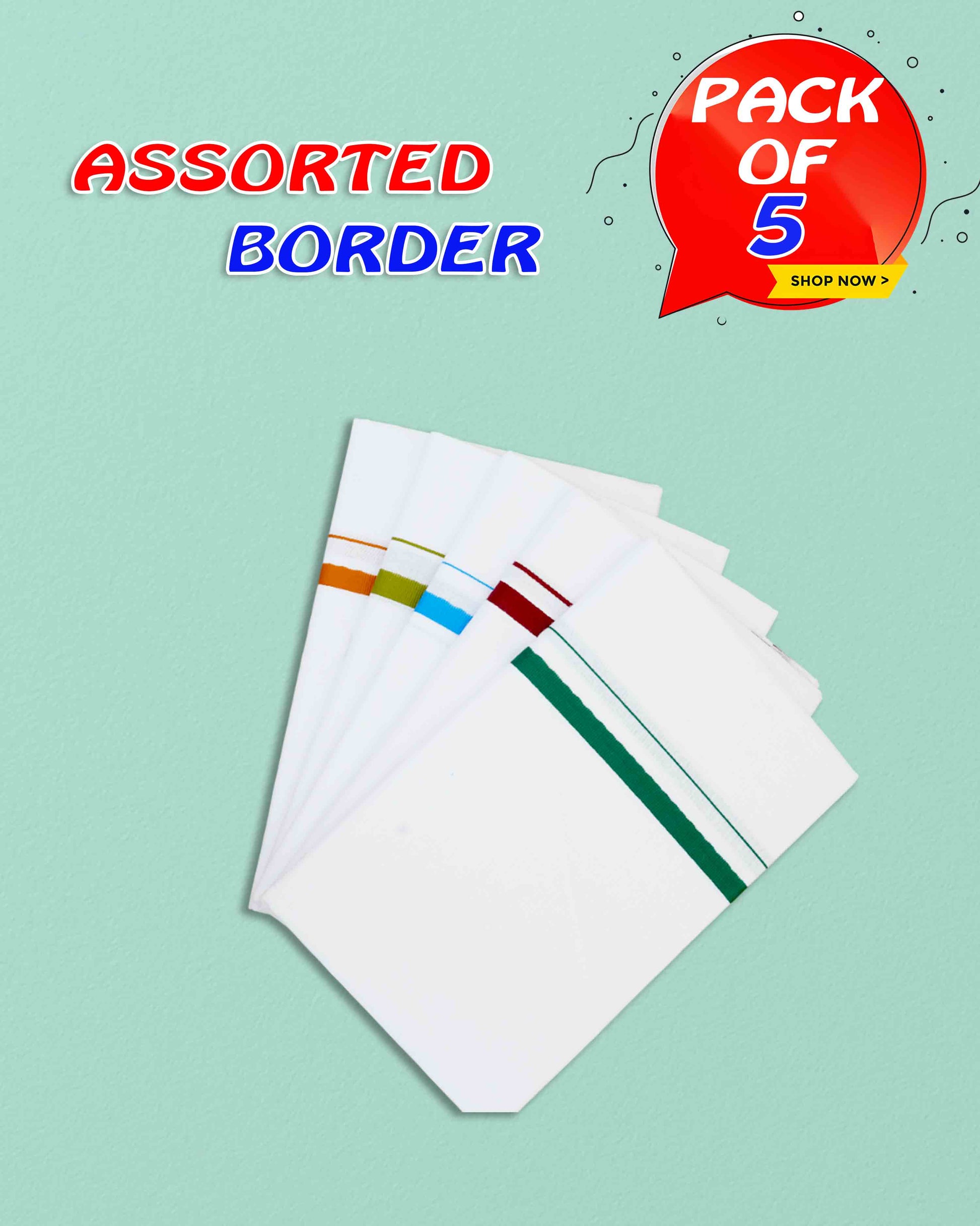 Men's 100% Cotton Dhoti | Combo pack | Free Size)Single Layer Dhoti with Radiant Multicolor Borders