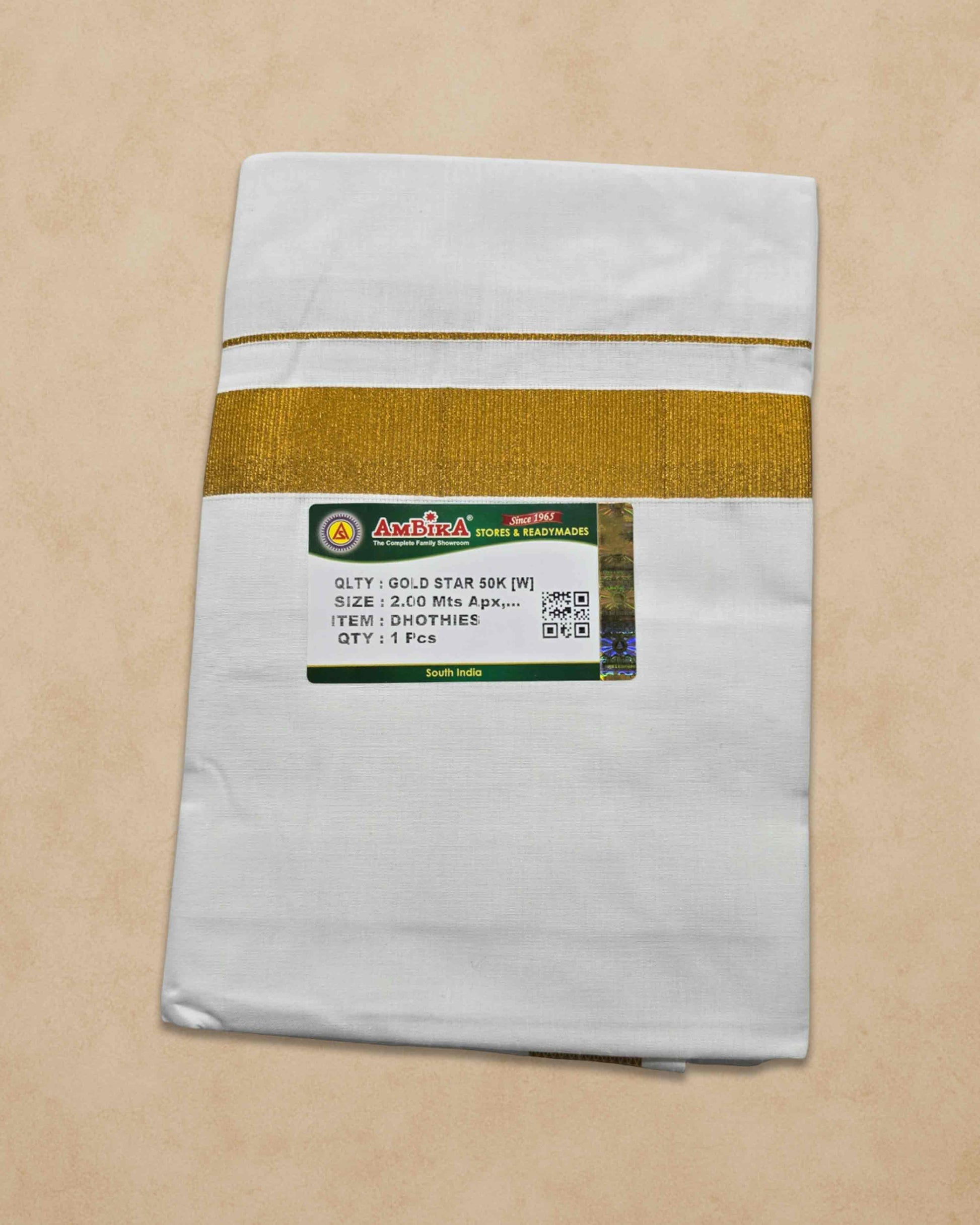 Dhoties Men's Traditional Pure Cotton Bleached White Dhoti With Cotton Color Border Size 9X5 - Gold