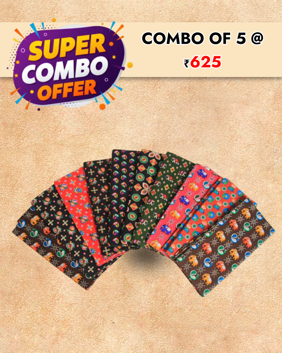 Kalamkari Blouse Piece Material 1 metre | Multicolour Print Set of 10