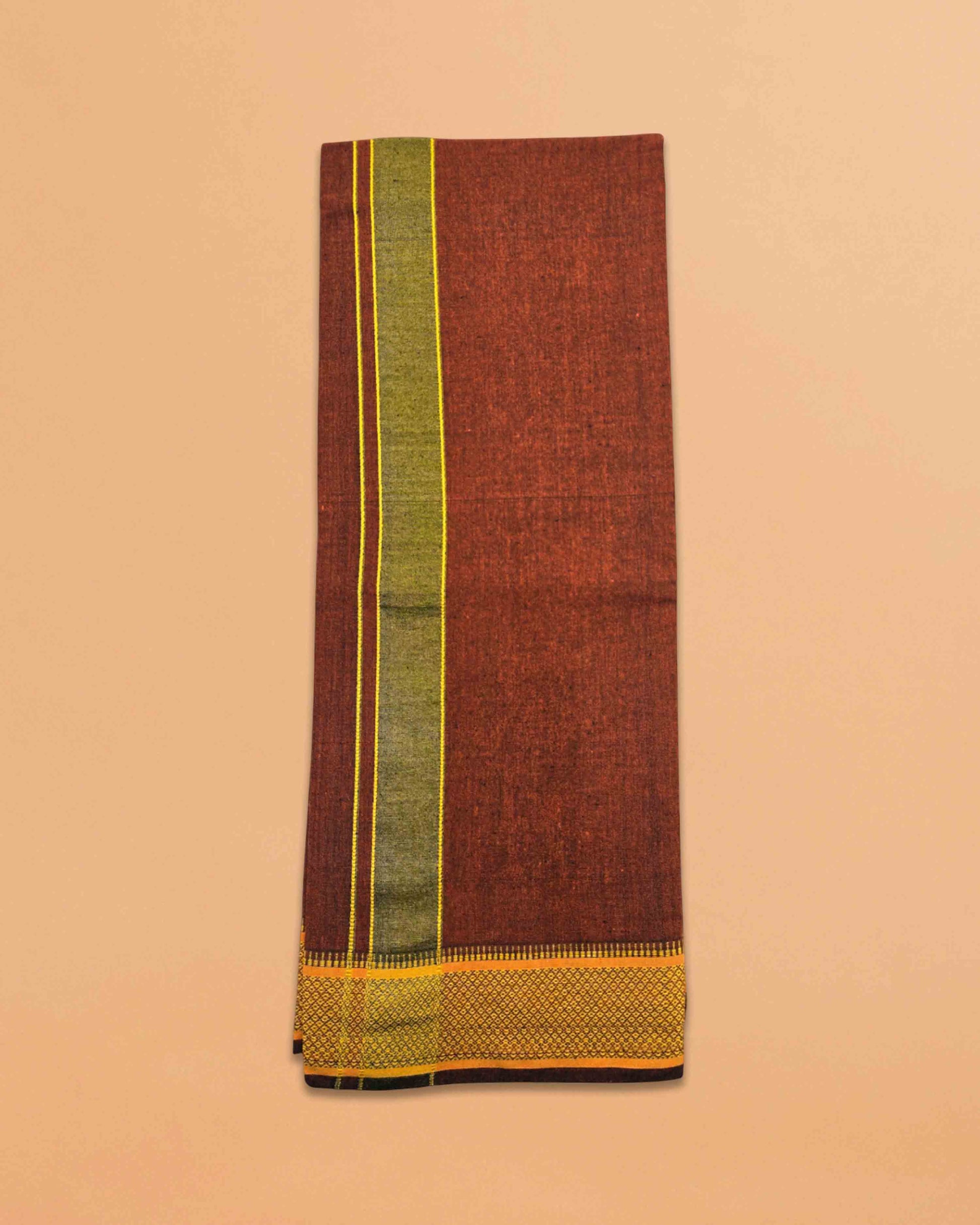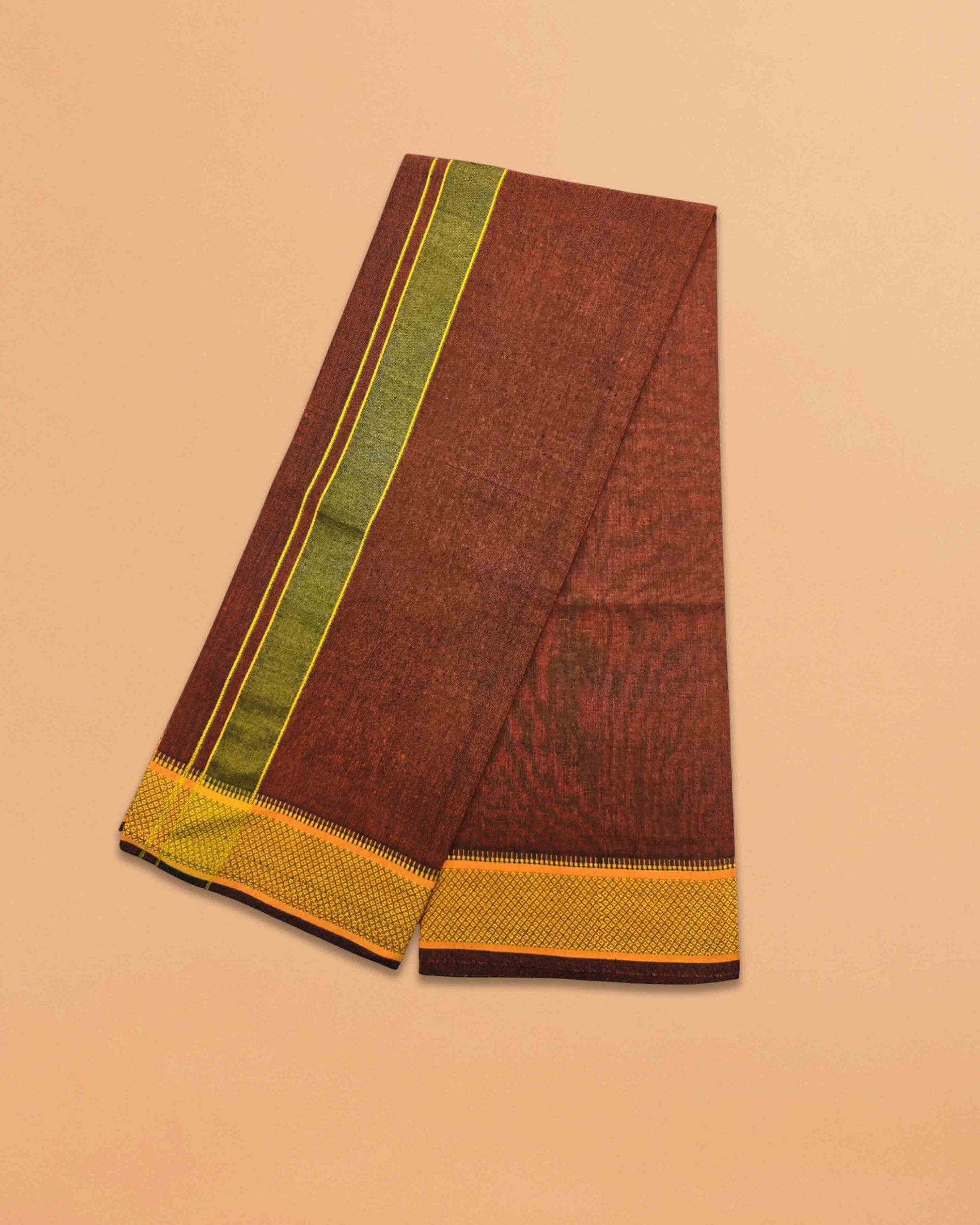 Cotton Color Dhotis for Men | Devotional or Temple Wear Dhoti | Mundu for Men | Padayappa Border Dhoti for Puja, Festivals, Religious and Casual Home Wear- brown