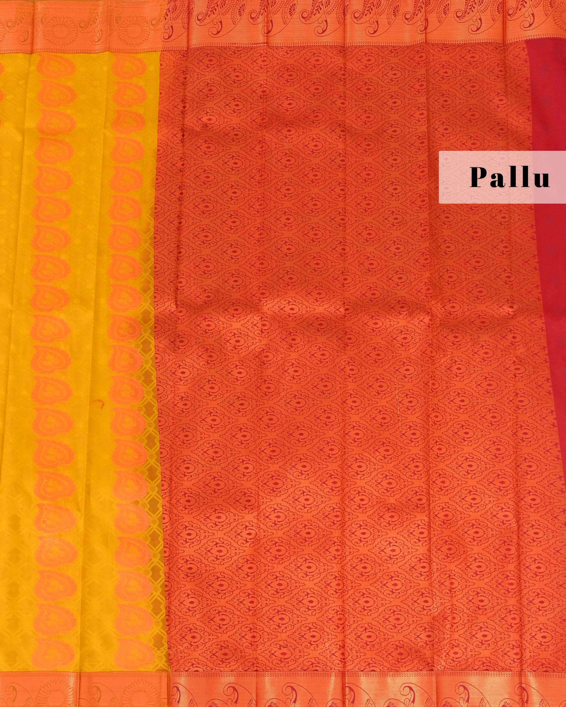 Drape yourself in elegance with this stunning mango yellow saree, crafted to perfection for weddings, parties, and festive occasions.