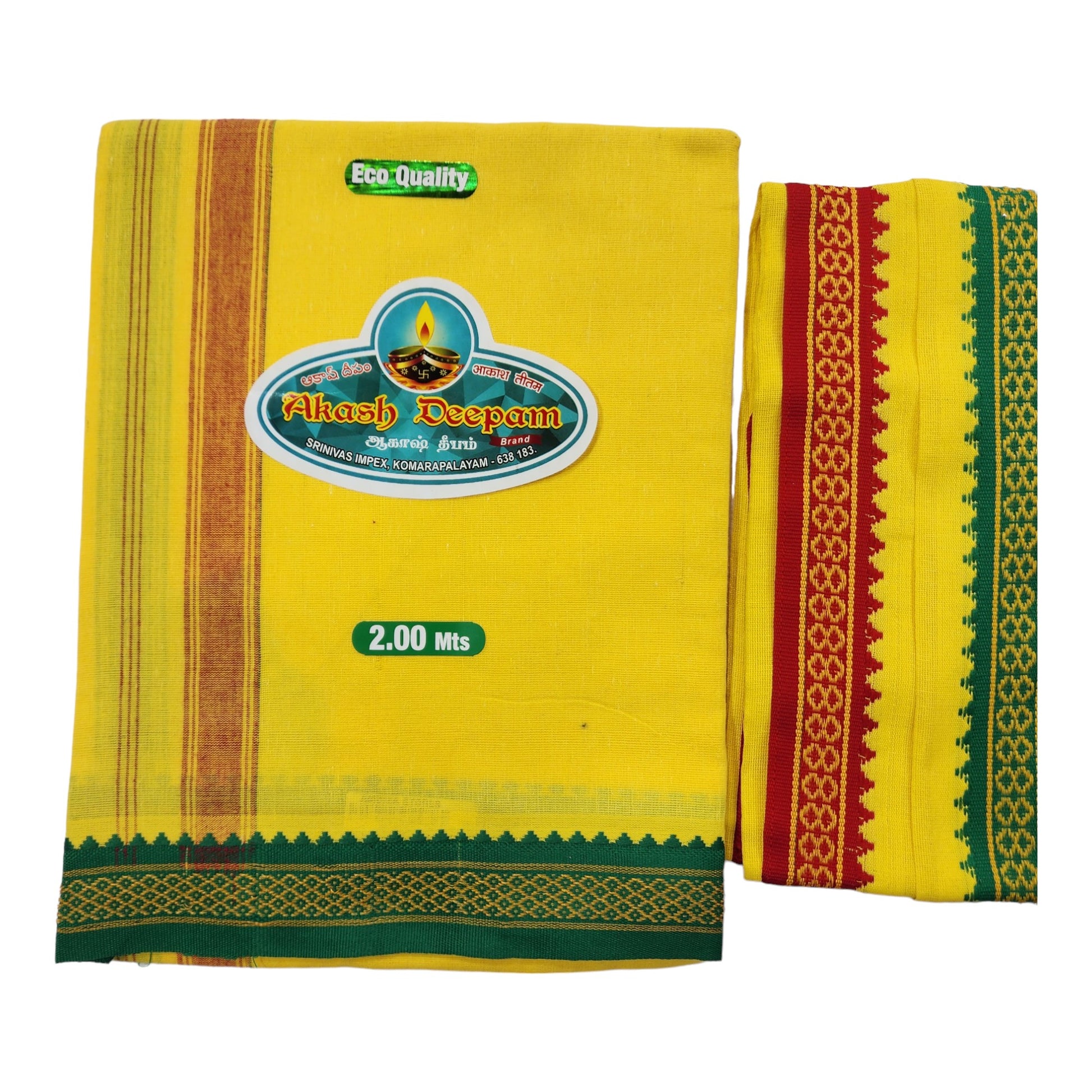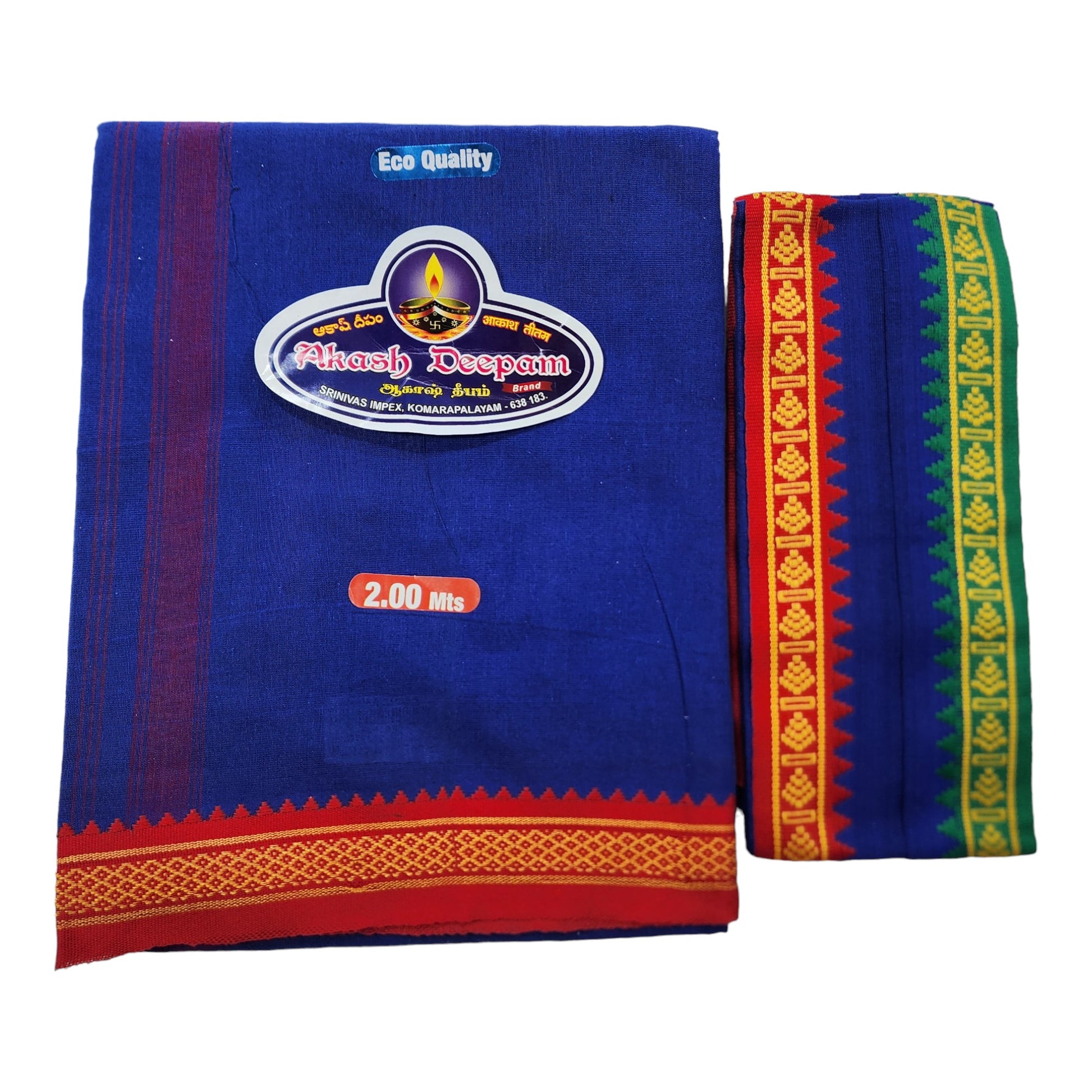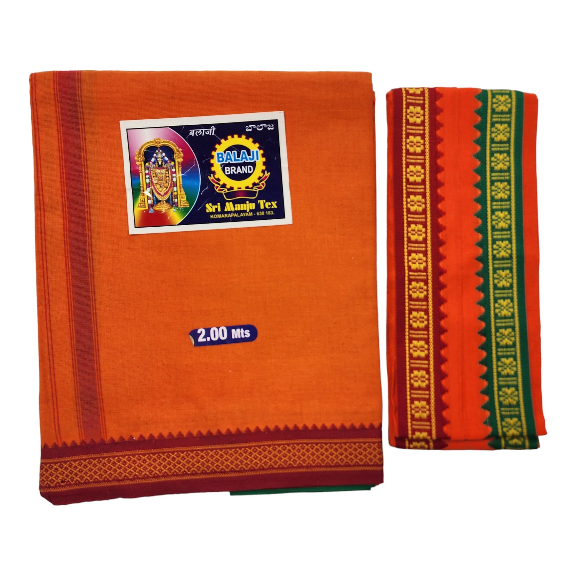 Upgrade your traditional attire with our Men's Cotton Dhoti and Angavastram Set. Made from high-quality cotton, this set offers a comfortable fit and elegant look. The set includes 1 Dhoti and 1 Angavastram, perfect for festivals and special occasions. Available in COLOR and size options (Length: 73 inch X 185 cm, Width: 47 inch X 120 cm). Complete your ethnic ensemble with this pack of 2 pieces.