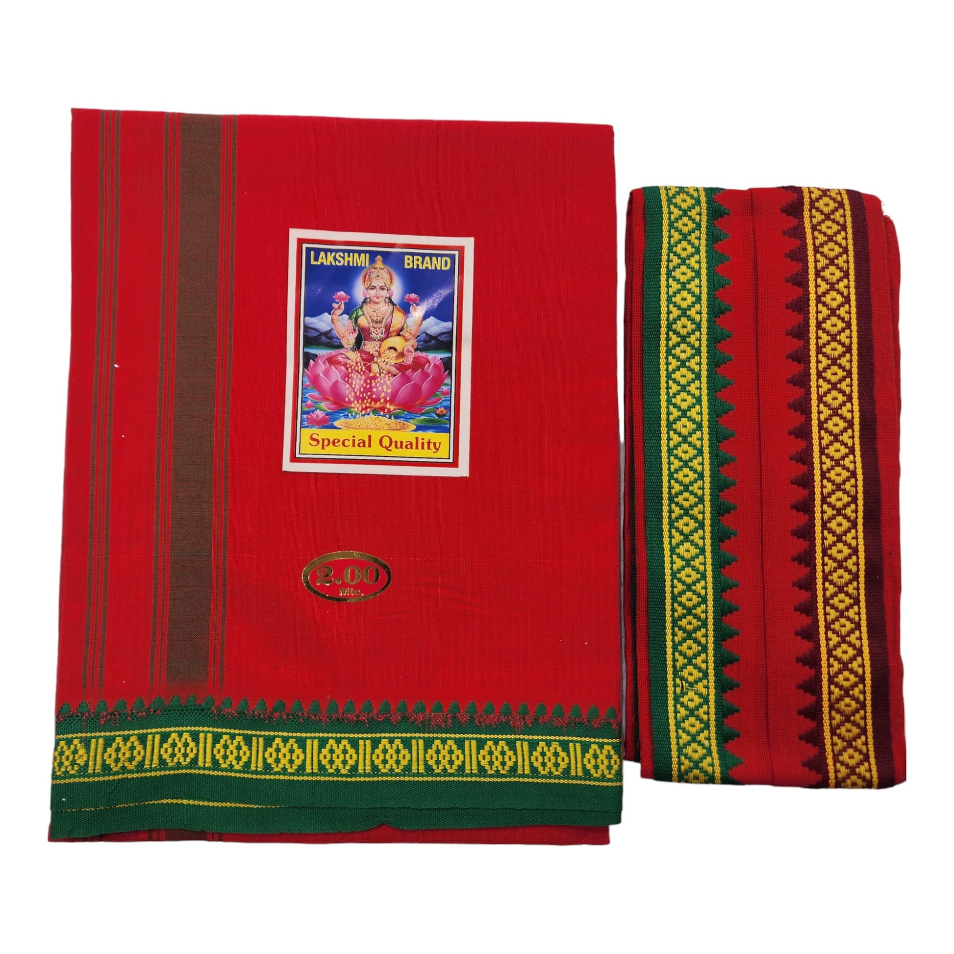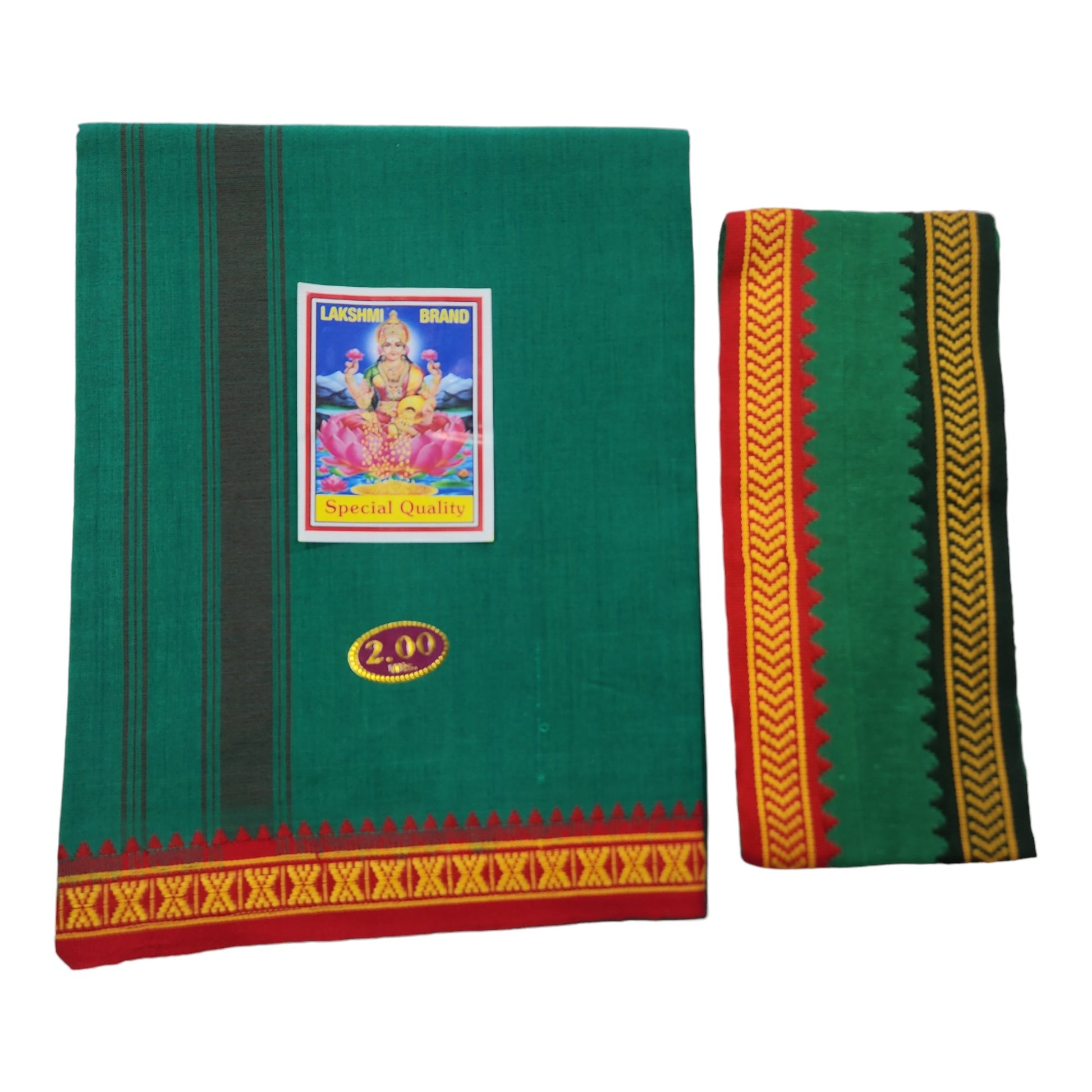 Men's Cotton Dhoti and Angavastram Set (COLOR, Size:Length:73 inch X 185 cm, Width:47inhc X 120 cm) (1 Dhoti + 1 Angavastram) Pack of 2 Piece