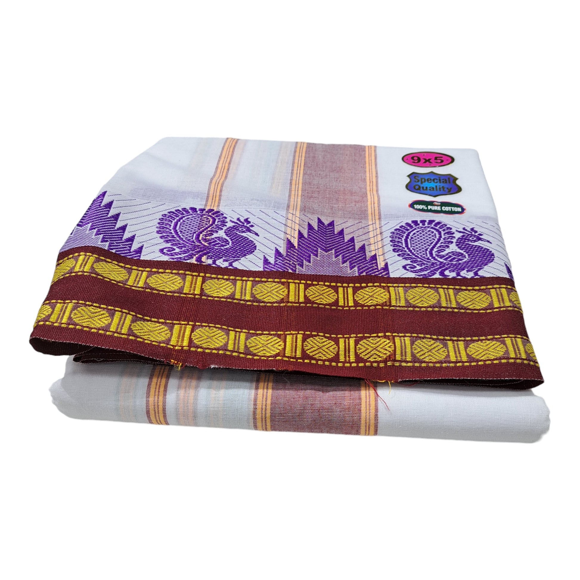 Pure Cotton Dhoties, 3" Jaquad Cotton 4 Meter Dhoti and 2.25 Meter Towel (9X5)