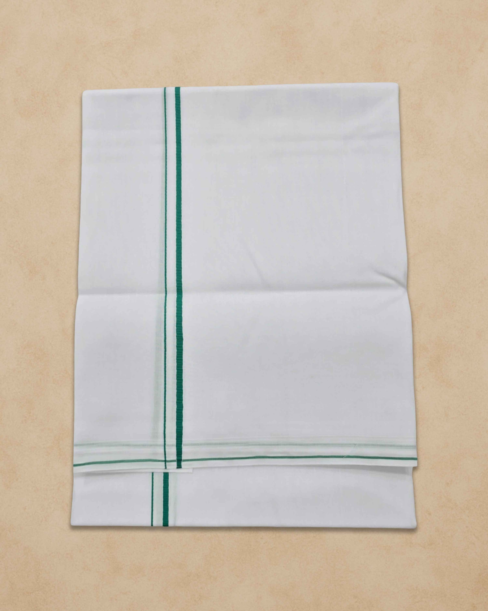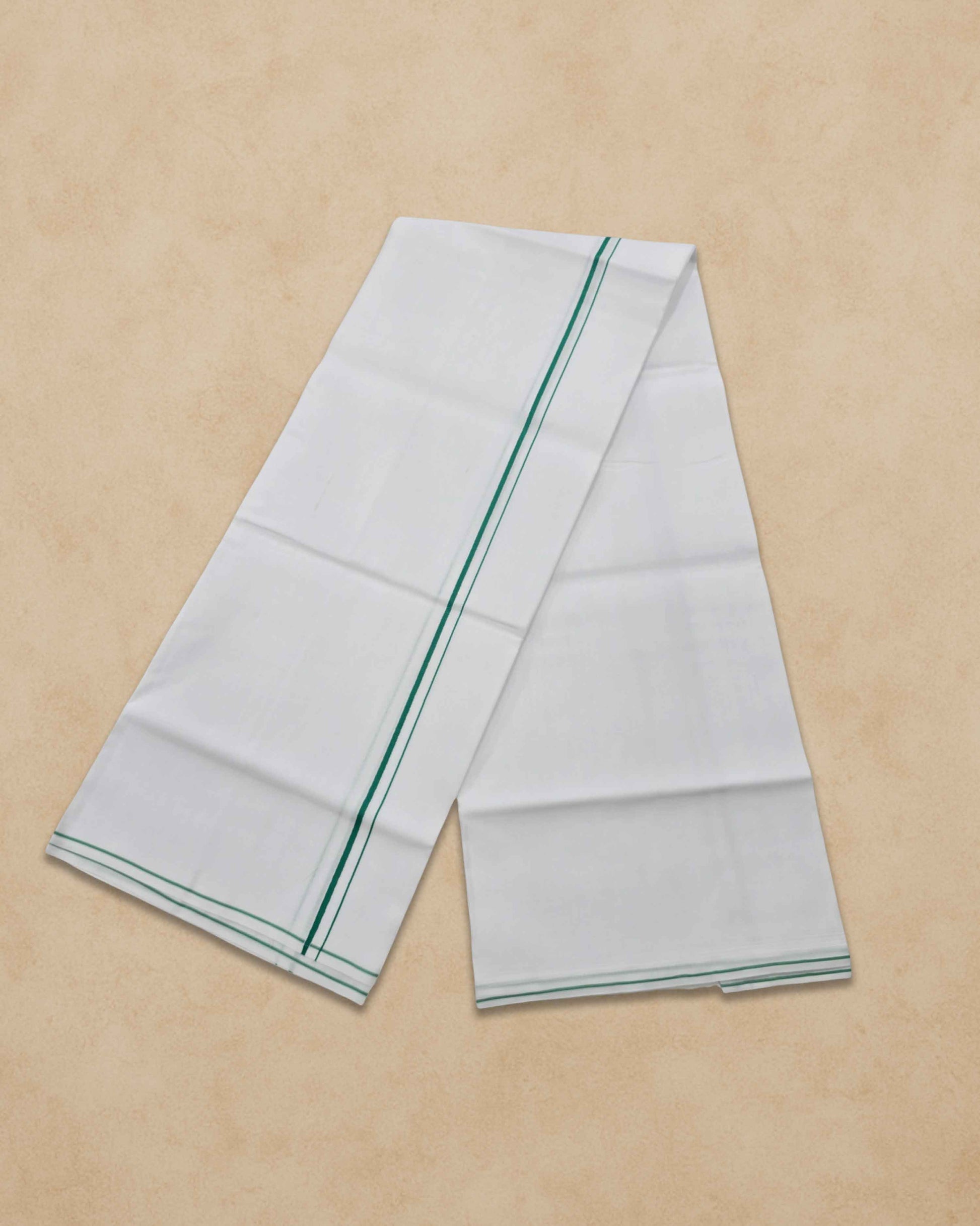 Pure Cotton White Dhoti With Colour small Border for Men's | Dhoti for Pooja, Weddings and Other Festive Occasions - Light Green