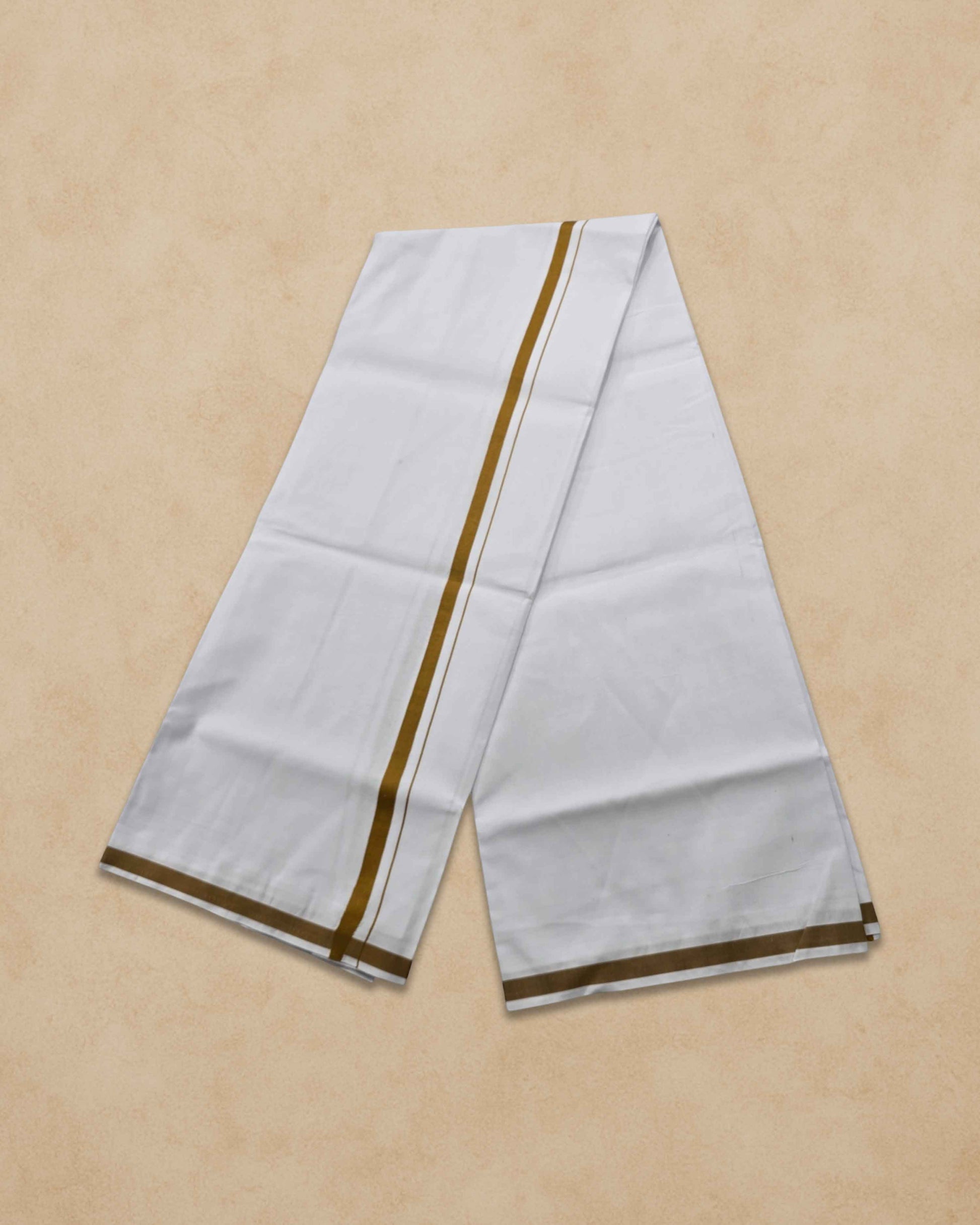 Pure Cotton White Dhoti With Colour small Border for Men's | Dhoti for Pooja, Weddings and Other Festive Occasions - Musturd