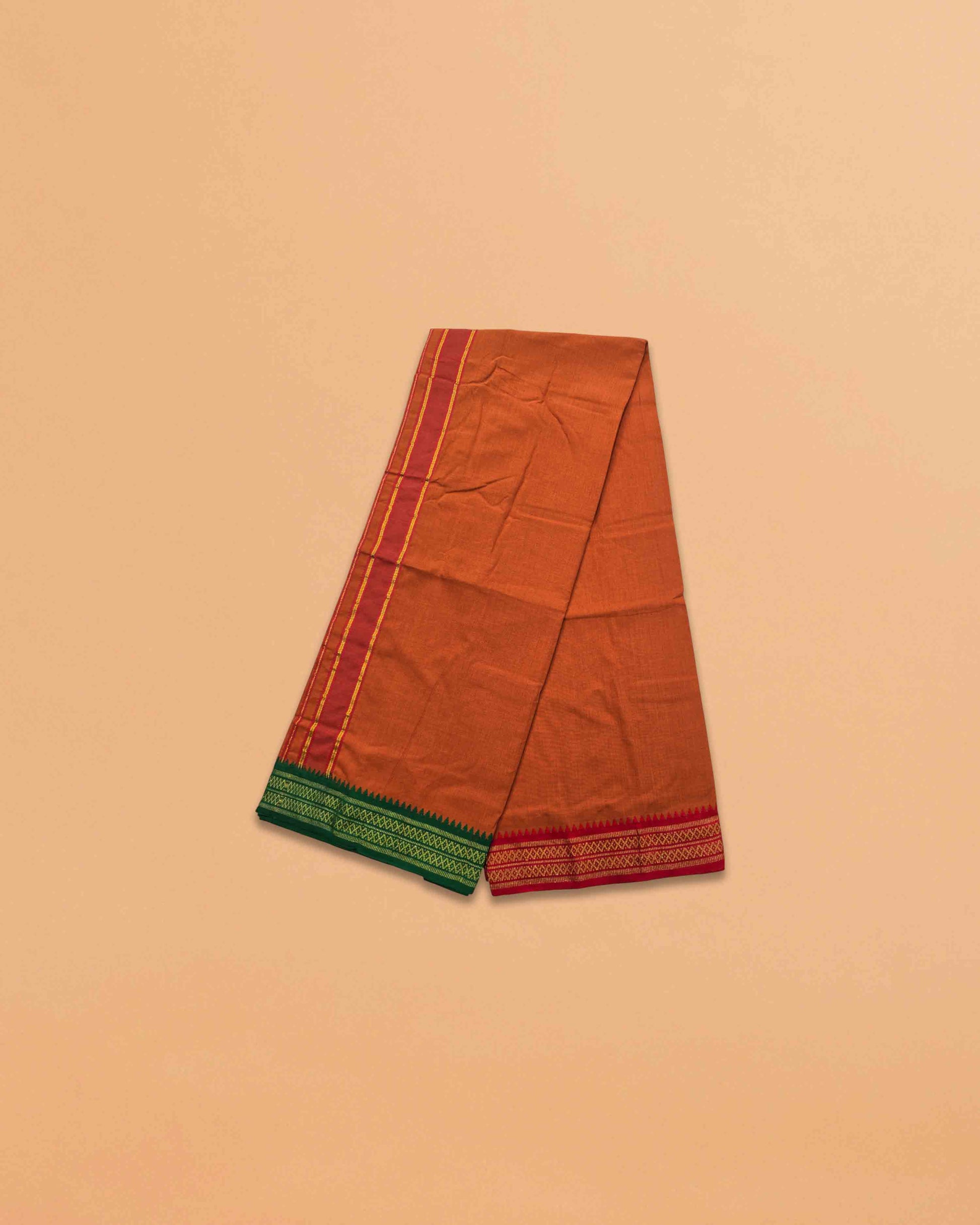 Cotton Dhoti and Angavastram Set (COLOR, Size:Length:73 inch X 185 cm, Width:47inhc X 120 cm) (1 Dhoti + 1 Angavastram) Pack of 2 Piece- kaavi