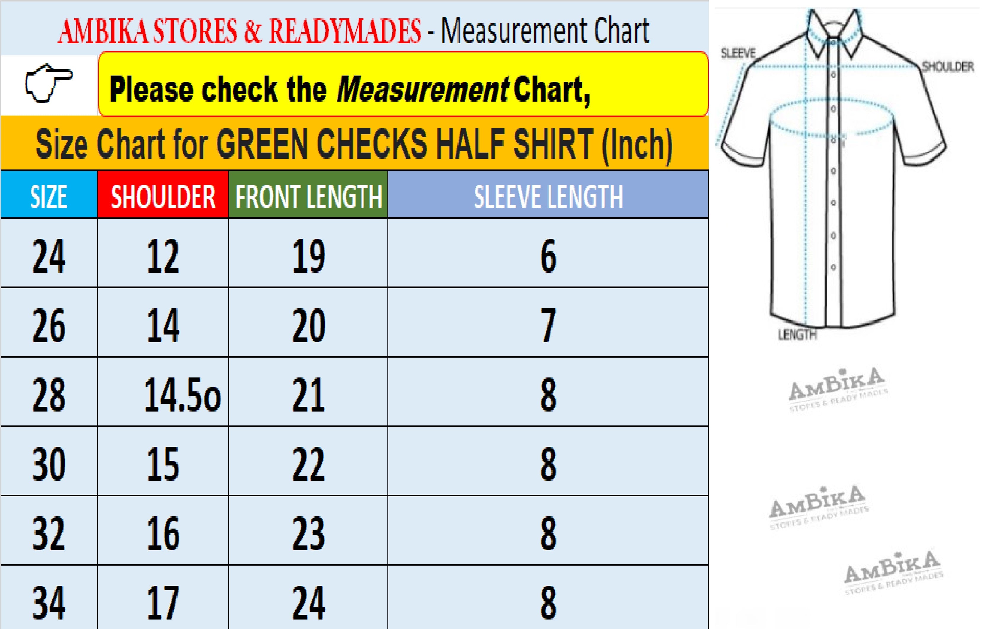 Unisex School Uniform Half Sleeve Shirt, Formal Shirt for Boys and Girls, Readymade Stitched, Green Checks, TN Std 1-5