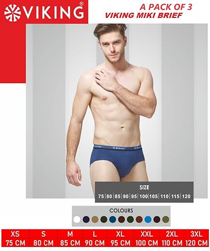 Introducing VIKING Men's Cotton Brief (Outer Elastic Miki), a pack of 3 assorted colored briefs that provide optimal comfort and coverage. Made from 100% combed cotton, these briefs feature a double-layered contour pouch and engineered elastic for a comfortable fit without leaving marks. Enjoy label-free comfort with a classic Y-shaped design.