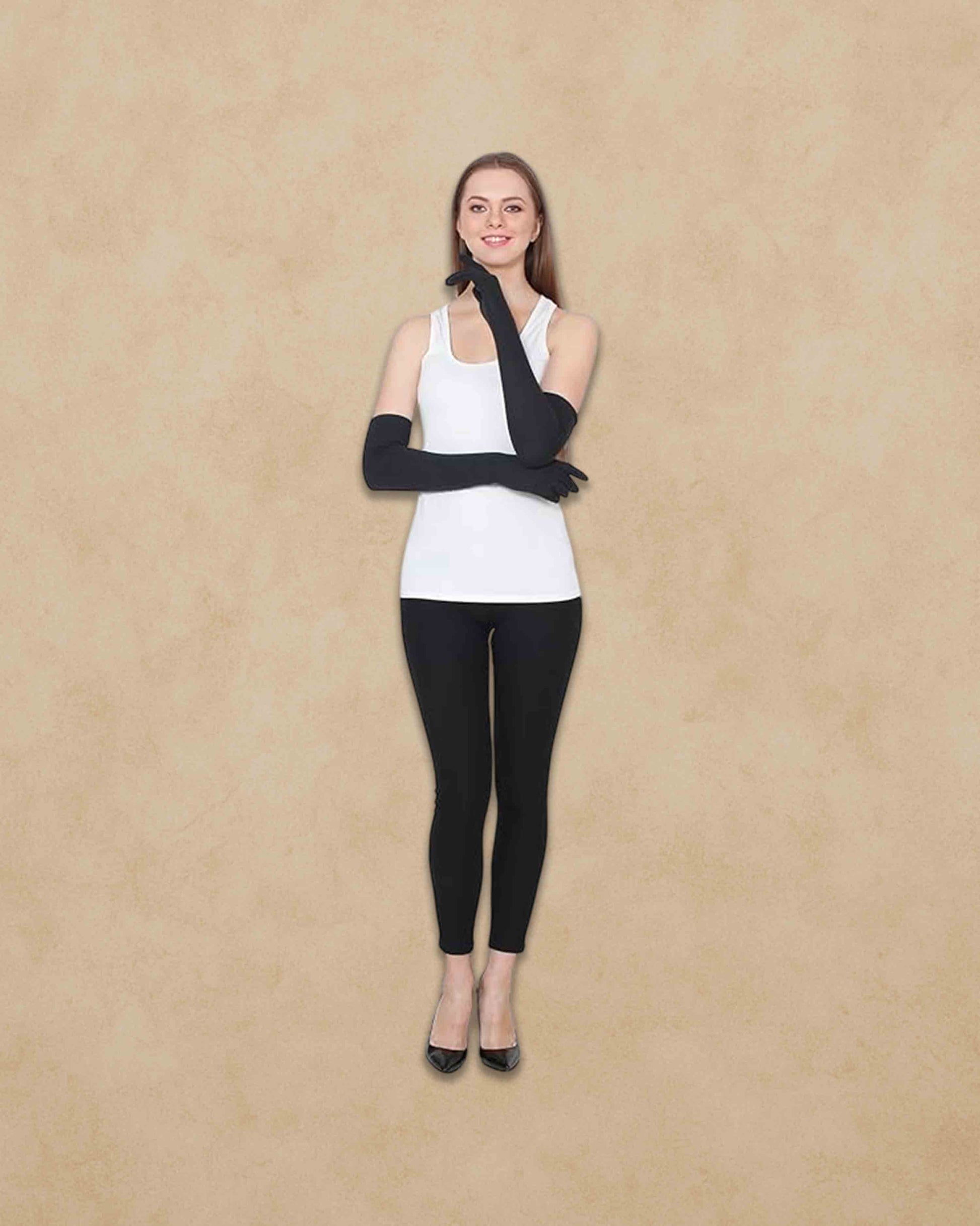 Women's Cotton Arm Sleeves – UV Protection Full Hand Gloves for Pollution and Sun | Perfect for Biking, Driving, Dust, Summer & Outdoor Use - black
